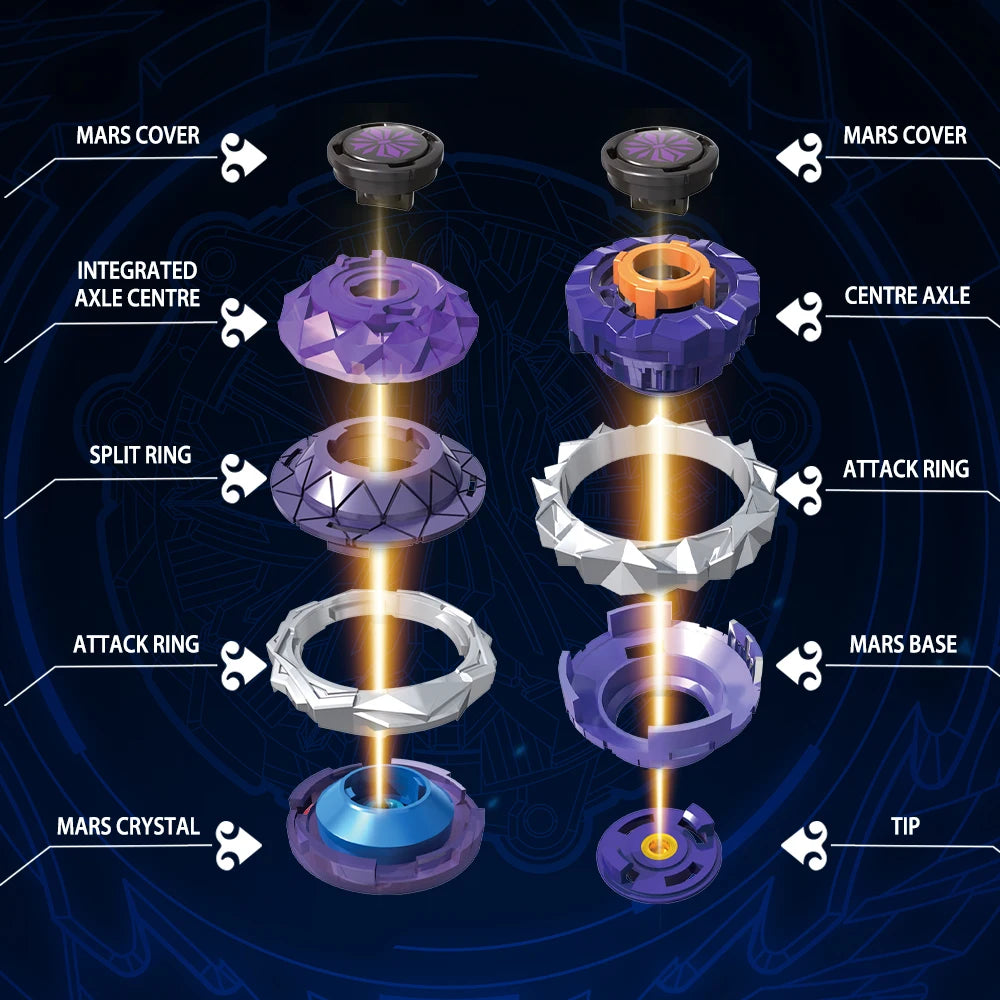 Arena-X Nado 3 Crack Series 2 In1 Split Transforming Metal Gyro Battle Spinning Top With Launcher Anime Kids Toy Gift
